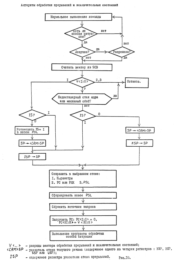 Более подробно эти два действия, и другие описаны в алгоритме обработки прерываний и исключительных состояний на рис.10.