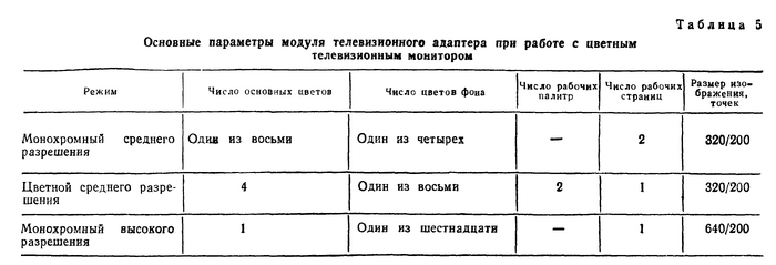Видеоконтроллер поддерживает только графические режимы. Текстовые режимы эмулируются программным обеспечением.