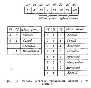 В режиме высокого разрешения, в зависимости от установки перемычки П1, контроллер может работать аналогично режиму среднего разрешения (П1 снята), тогда в строке выводится 640 независимых точек, либо, за счет снижения разрешения (П1 установлена), яркость соседних точек усредняется (используется для бытовых телевизоров с узкой полосой пропускания).