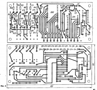 Чертеж печатной платы контроллера по схеме рис.1 с транзисторными формирователями, показанными на рис.3, приведен на рис.5. Номера контактных площадок платы, предназначенных для соединения с компьютером, соответствуют номерам проводов на схеме рис.1. Номера контактных площадок, соединяемых с внешним устройством, совпадают с номерами цепей в соответствии со стандартом на интерфейс. Многие внешние устройства не используют весь набор управляющих сигналов. Например, на большинство принтеров достаточно подать сигнал TXD и принять сигнал готовности DSR. В подобных случаях детали неиспользуемых формирователей на плате контроллера можно не устанавливать.